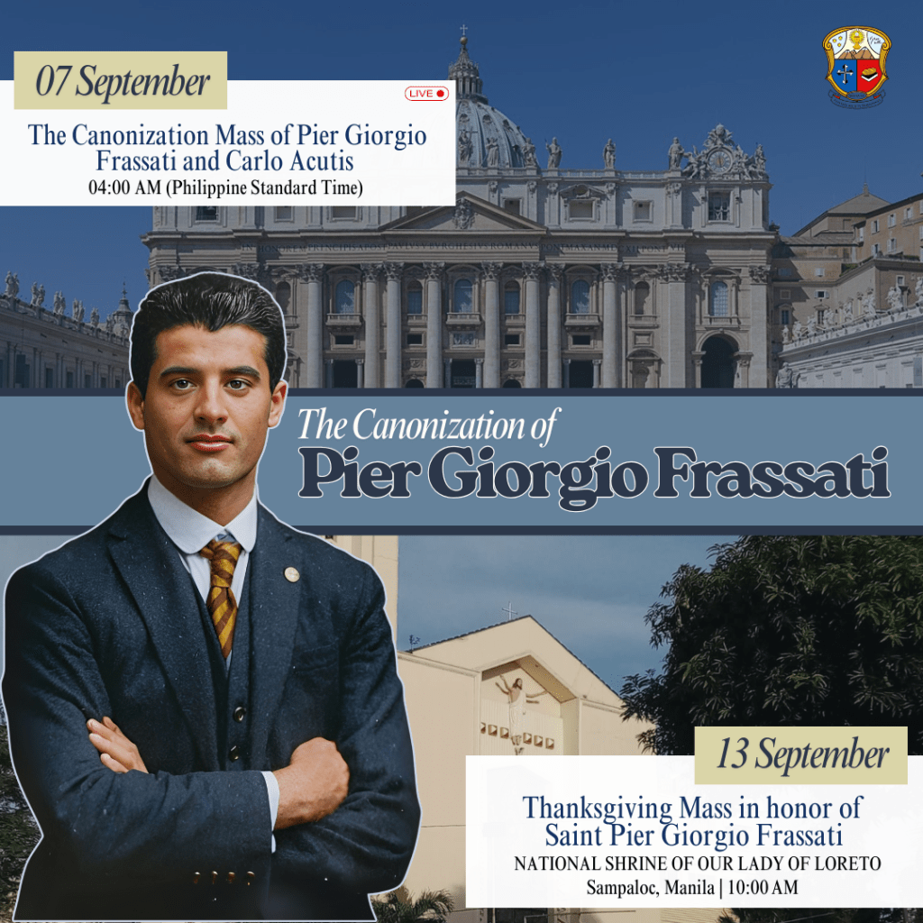 Since not everyone can be in Rome, the Frassati Society Philippines will host a Frassati Day Thanksgiving Celebration on September 13, 2025, from 9:30 a.m. to 2:30 p.m. at the National Shrine and Parish of Our Lady of Loreto, Sampaloc, Manila.