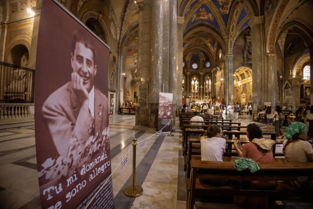 Saint Pier Giorgio Frassati was profoundly devoted to the Eucharist and the Blessed Virgin Mary. Since he was 12 years old, he practiced daily communion with few exceptions until his last Communion received on July 3, 1925. Pier Giorgio also spent hours in Adoration especially during the night. He intensely focused on the Blessed Sacrament. He encouraged others to also receive the Eucharist as much as possible when he attended Eucharistic Congresses.